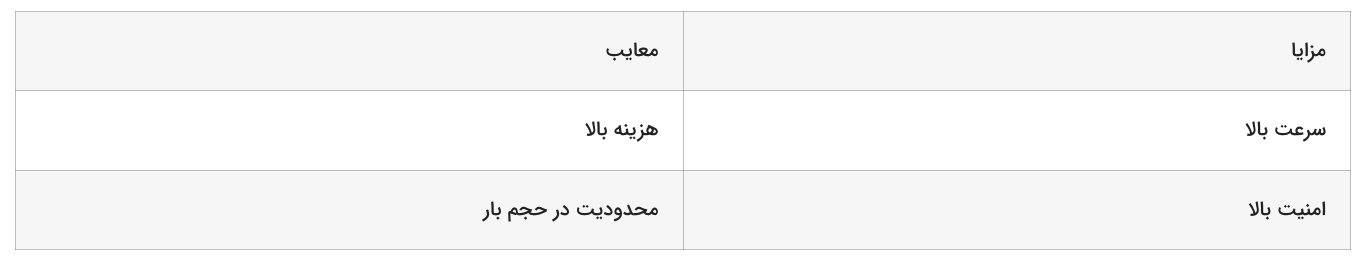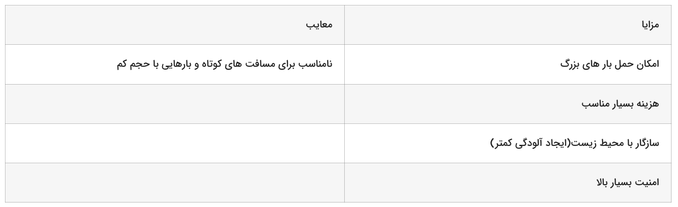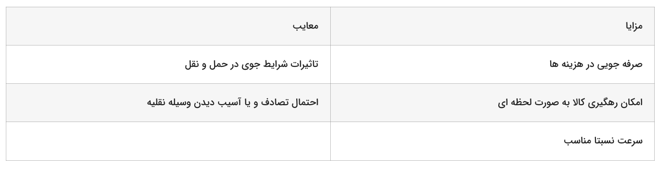 هر یک از روشهای حمل و نقل، مزایا و معایب خاص خود را دارند که در ادامه به آنها خواهیم پرداخت.